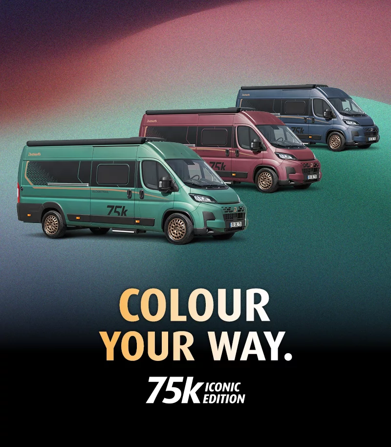Es ist Zeit, deinem Abenteuer einen neuen Look zu geben: Zur Feier von 75.000 gebauten Camper Vans präsentiert Dethleffs die Globetrail 75k Iconic Edition. In Isny mit Leidenschaft perfektioniert, setzen wir auf einzigartige Farben und auffällige Details – innen wie außen. Für dich. Für deine Reise. Denn wer mit dem Globetrail von Dethleffs fährt, erlebt erprobte Qualität und fährt nie gewöhnlich, sondern mit Charakter und Statement. Persönlich. Besonders.