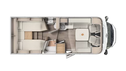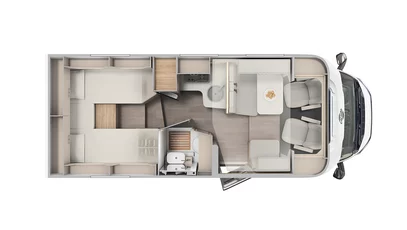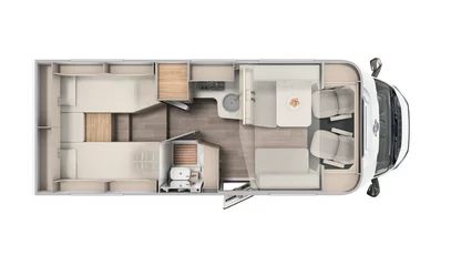 Mit praktischen Längseinzelbetten, Schlafplatz für bis zu 4 Personen und einer geräumigen Garage im Heck ist der T447 EDITION26 der ideale Begleiter auf Reisen. Die offene Blickachse sorgt für ein enormes Raumgefühl.